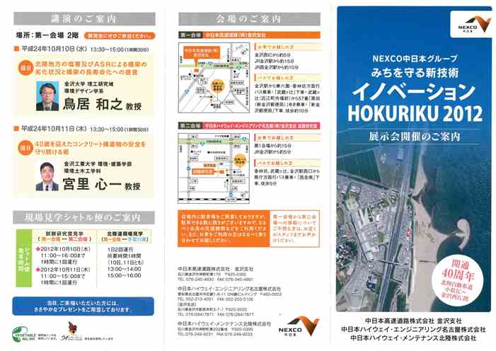 『みちを守る新技術 イノベーションHOKURIKU2012』展示会が開催されます。