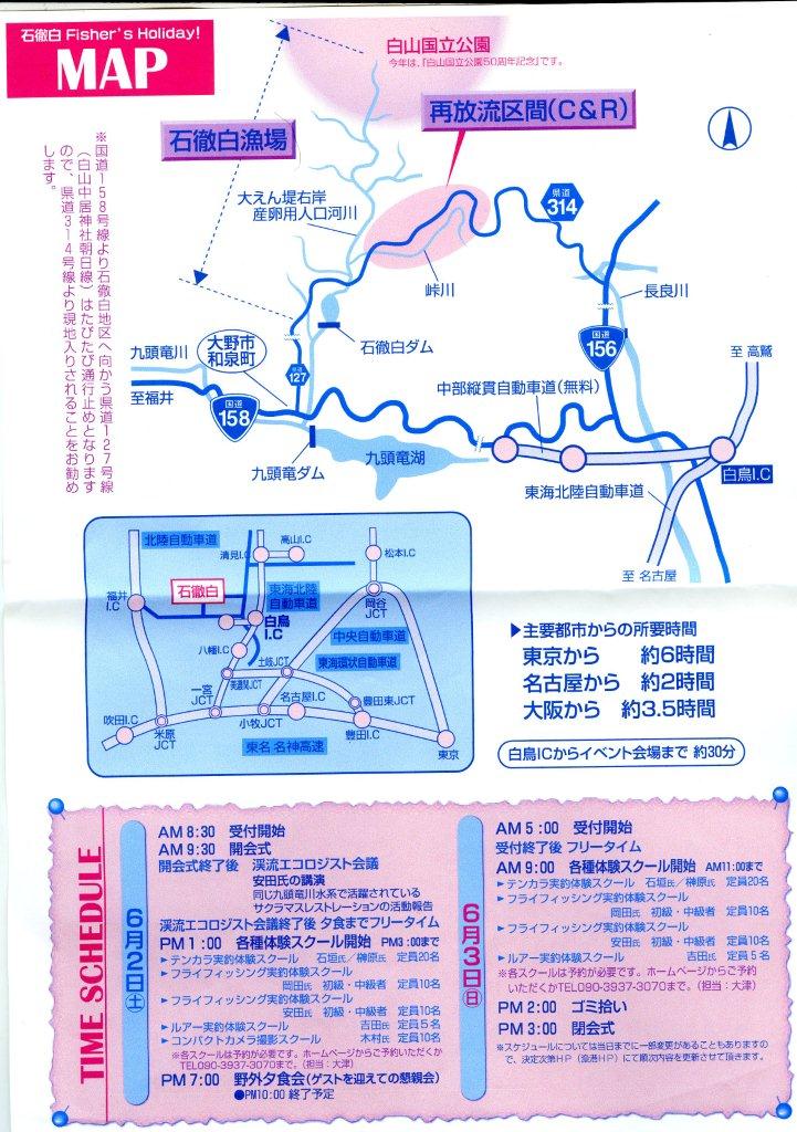 白川村平瀬温泉から白山国立公園大白川渓谷までの県道白山公園線を、ロング約21km、ミドル約11km、ショート約6kmの3つのコースから選択しウォーキングできる。 ●名称 世界遺産白川郷 平瀬温泉 大白川渓谷ウォーキング ●開催地 岐阜県白川村平瀬 道の駅「飛騨白山」駐車場 集合・受付 ●所在地 〒501-5507 大野郡白川村平瀬516-62 ●開催期間 2012年6月23日 ●開催時間 09:00〜15:00 受付時間は7:00〜8:00 各自ウォーキング終了後解散 少雨決行、道路の状況 により中止の場合あり ●料金有料 大人1,500円、小学生800円 ※事前申込者・村内宿泊者の割引あり ●アクセス (車)東海北陸自動車道白川郷ICより国道156南進約20km ●アクセス (公共交通)濃飛バス「平瀬温泉」停留所 徒歩約10分 ●駐車場あり無料 ●問い合わせ先 白川郷観光協会 TEL:05769-6 -1013 ※情報は予告なく変更になる場合がございます。観光イベントの中止や開催期間の変更などに関しては、問い合わせ先にご確認ください。